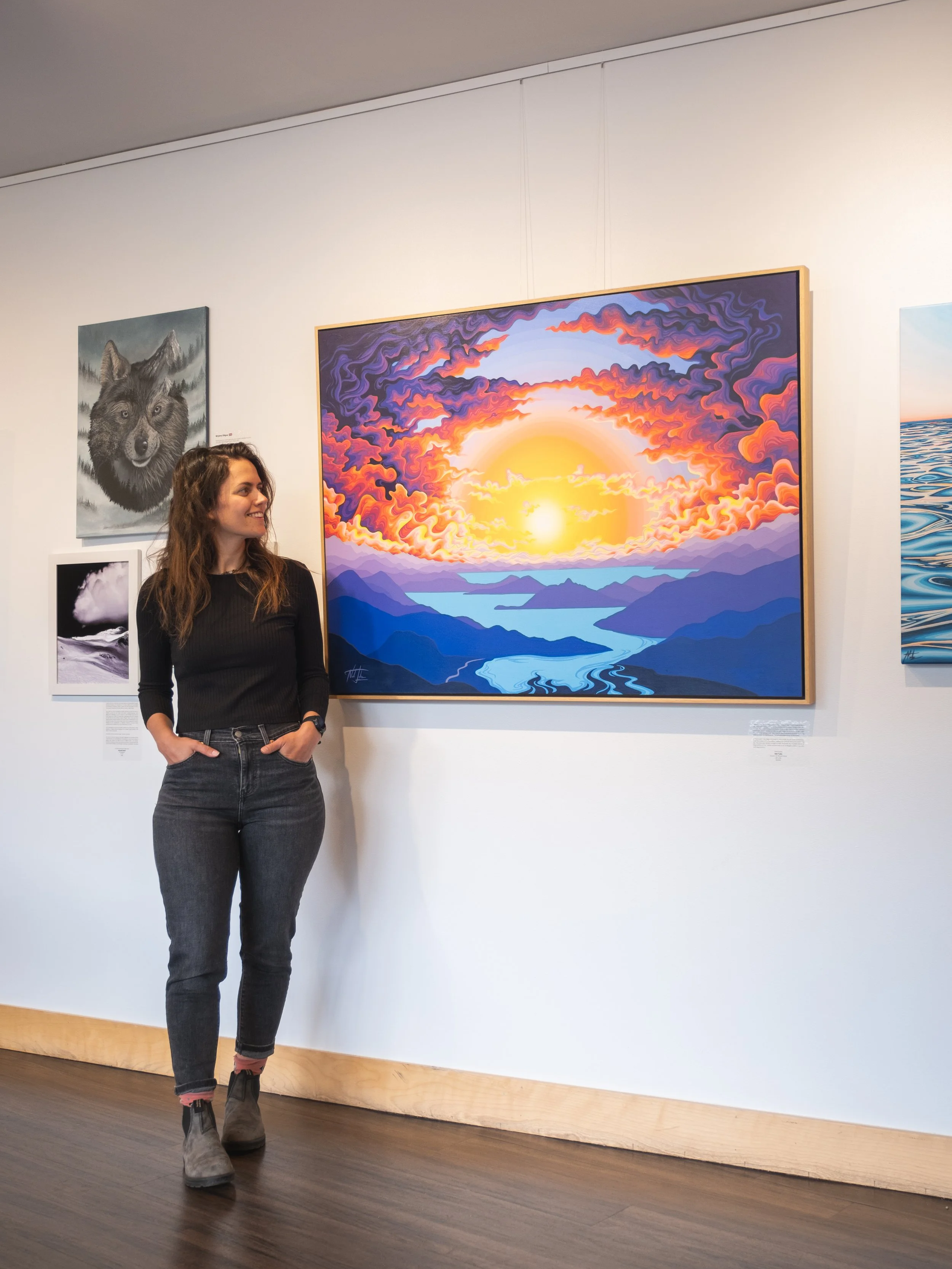 Nat Tuke is an artist and graphic designer living and creating on the unceded territory of the Sḵwx̱wú7mesh Úxwumixw (Squamish Nation). Her artwork is a love letter to the living world — a vibrant celebration of the coastal mountain landscape. Nat paints what it feels like to stand in nature, rather than simply what she sees. While nothing can truly capture the beauty or energy of our planet, she strives to convey its emotional essence through vivid colour and flowing linework. Crisp, fine lines painted with painstaking precision evoke the clarity and freshness of the coastal mountain air.